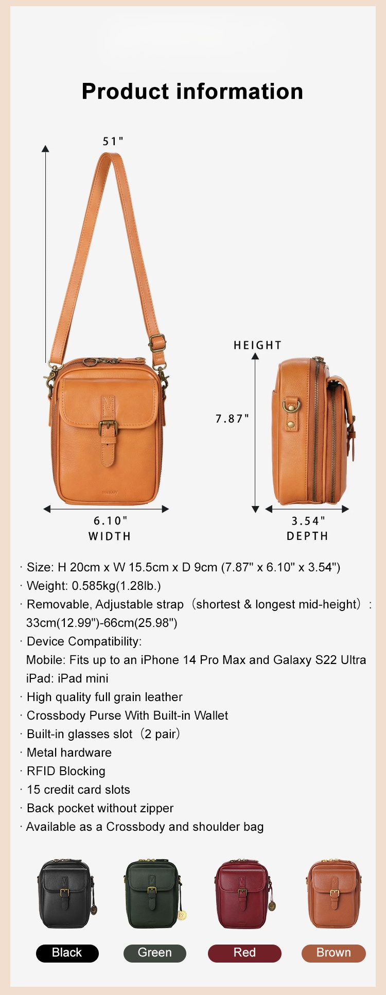 ✨ Your ultimate secure smart crossbody bag with 9 pockets, easily create Italian leather style💃